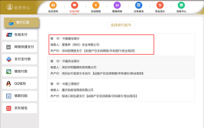 我们提供多种入款方式,点击选择一个适合您的入款银行账号