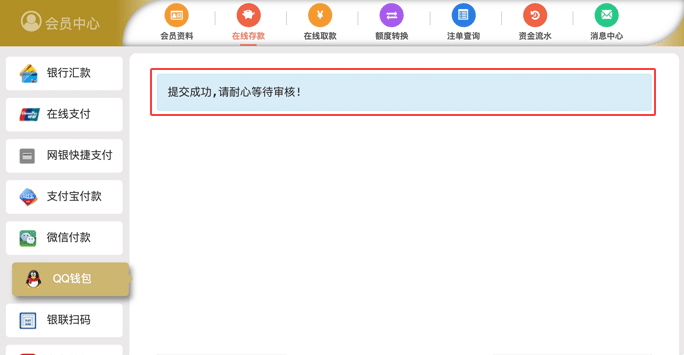 我们提供多种入款方式,点击“QQ钱包”,扫描二维码,并输入相关信息后提交