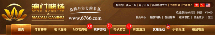 登陆澳门赌场后,在网站导航上点击“电子游艺”