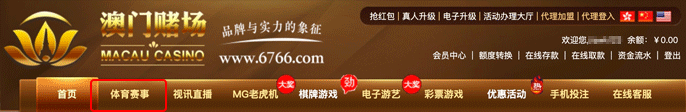 登陆澳门赌场后,在网站导航上点击“体育赛事”